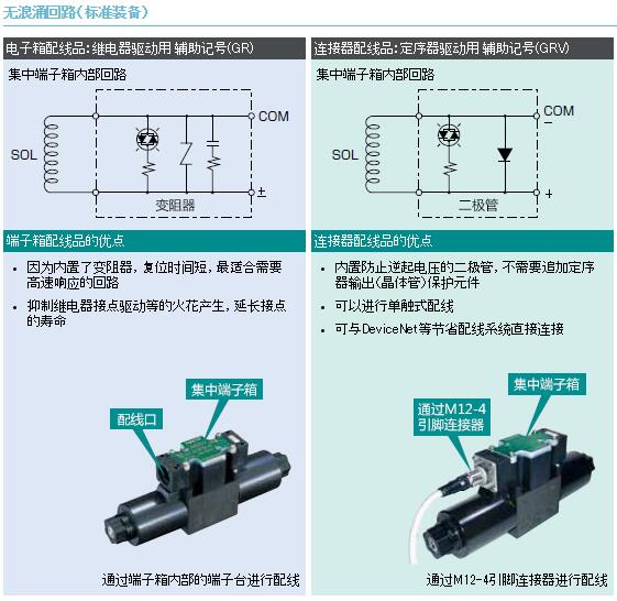 备有端子箱/DIN连接器配线品和连接器(M12-4引脚连接器)配线品,可按型号辅助记号选择。